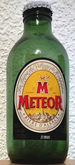 1492 kam es in Ensisheim, Elsass, zum ersten Meteoritenfall Europas (Artikel). Seit 1640 wird im elsässischen Hochfelden Bier gebraut: Der Name Meteor Bier kam dort erst 1925 in Gebrauch. Auf dem Etikett und den Kronkorken älterer Bierflaschen sah man fünfzackige Sterne - und einen ebenso fünfzackigen Meteor.