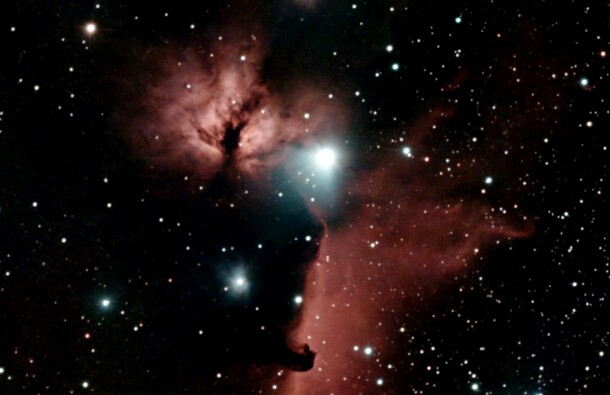 Farbkameras werden in der Astrofotografie gern OSCs genannt (One Shoot Cameras). Vor allem jene mit CMOS-Sensoren liefern mit passenden UHC-Filtern respektable Fotos von Emissionsnebeln. Das Dwarf 3, eine Smart-Telescope der chinesischen Firma Dwarflabs, spielt hier sogar seine Stärken aus - wie das folgende Foto belegt. Es zeigt unter anderem den Flammennebel im Orion.