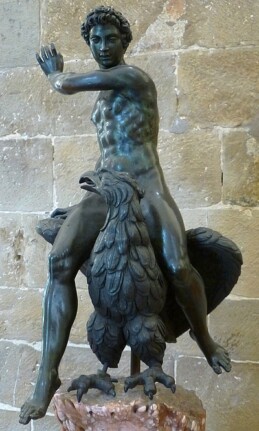 Foto links: Ganymed und der Adler.Bronze-Statue, entstanden um 1500 in Florenz
