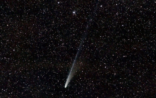 Die Mitnahme eines Fernglases empfiehlt sich bei der Kometensuche. Es sollte einen matten Lichtflecken mit zentraler Verdichtung und einen nach oben weisenden, mehr oder minder langen Schweif zeigen.