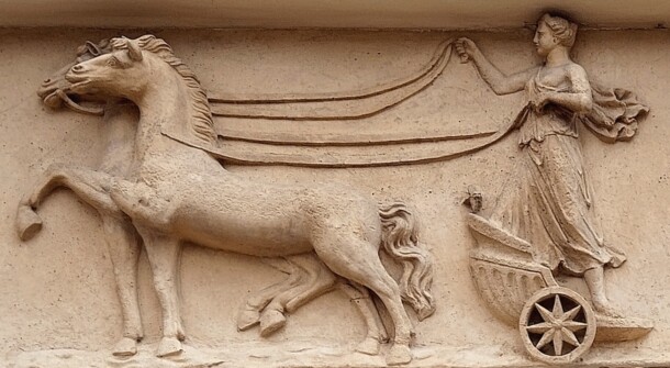 Am Haaderhaus im niederösterreichischen Langenzersdorf sind griechisch-römische Gottheiten abgebildet. Vier davon fahren im Wagen. Bei zwei dieser Wägen erinnert das Rad an einen Stern. Das Rad am Wagen der nachts jagenden Artemis-Diana (sie gilt auch als Mondgöttin) besitzt fünf Speichen, das der Eos-Aurora (Göttin der Morgenröte) hingegen acht.