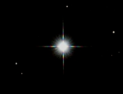 Keine Zacken, aber Speichen?Manchmal sieht man Himmelsfotos, auf denen vier Speichen von jedem hellen Stern wegziehen. Solche Figuren entstehen erst im Instrument, durch die Beugung des Lichts an der Fangspiegelhalterung (Spinne genannt) von Teleskopen Newtonscher Bauart. Fernrohre anderen Typs besitzen keine Spinne. Dort ist die Sternabbildung einfach rund.