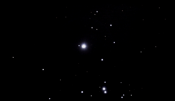 Iota Orionis (nahe Bildmitte) gehört zur O-Klasse. Temperatur: 32.000°