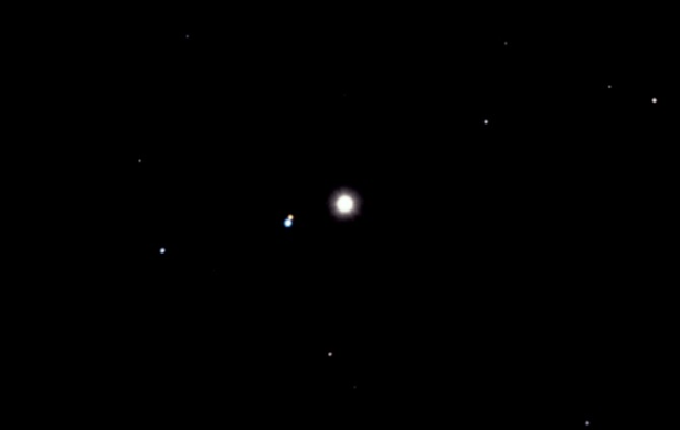 Der Stern Regulus und der Planet Mars - absichtlich im Spiegelteleskop unscharf gestellt