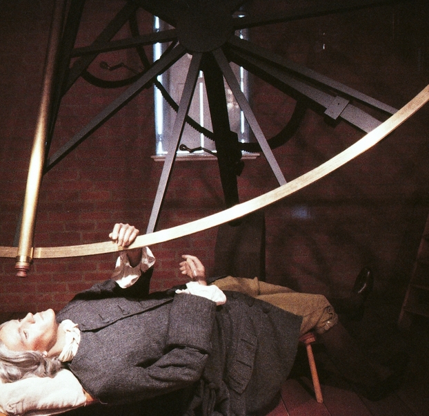 Später beobachtete man in Greenwich auch mit äußerst langbrennweitigen Teleskopen (Modell, 1986)