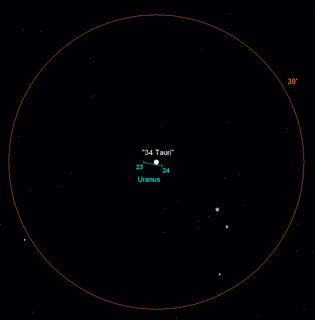 Flamsteeds Eintrag "34 Tauri" und die Uranusörter nach GUIDE
